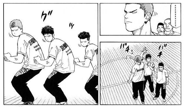 La pleitesía pensé que sería inmerecida, como tantas cosas vistas con las gafas rosas de la nostalgia. Pero no. Es BUENO. Tiene sus cosas de la época, como el rollo pandillero telenovelero. Me hubiera gustado un mejor trabajo en las químicas entre personajes. Por ejemplo; Kuroko No Basket es radicalmente diferente en su acercamiento, con estereotipos guaperas (claramente con el público femenino en mente). Aun así, trabaja todo el manga en desarrollar una unidad de equipo entre estos estereotipos. Sus rifirafes son reacciones químicas prefabricadas entre esterotipos, PERO AL MENOS ES ALGO. Por contra, Slam Dunk individualiza el desarrollo de cada uno (menos Ryota); obviando las químicas. Como resultado, cada miembro del quinteto de Slam Dunk, desarrolla su propia identidad en el partido final. Partido adaptado en The first Slam Dunk. Un poco va de eso, como todos hacen piña como familia DURANTE el partido final. No son amigos, como dice el capitán Akagi; pero son una pandilla.